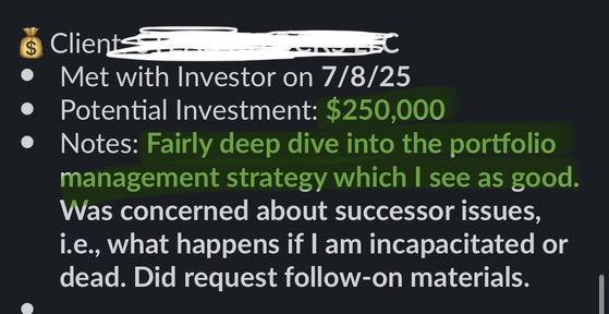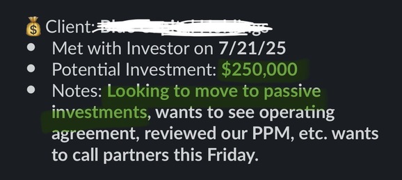 This brand-new sponsor group launched with zero market presence—and within four months, built a $22M investor pipeline. With $1M+ prospects, one at $3.5M, and a $7M standout, they're now tracking $1M per month raised at around a 3% cost of capital.